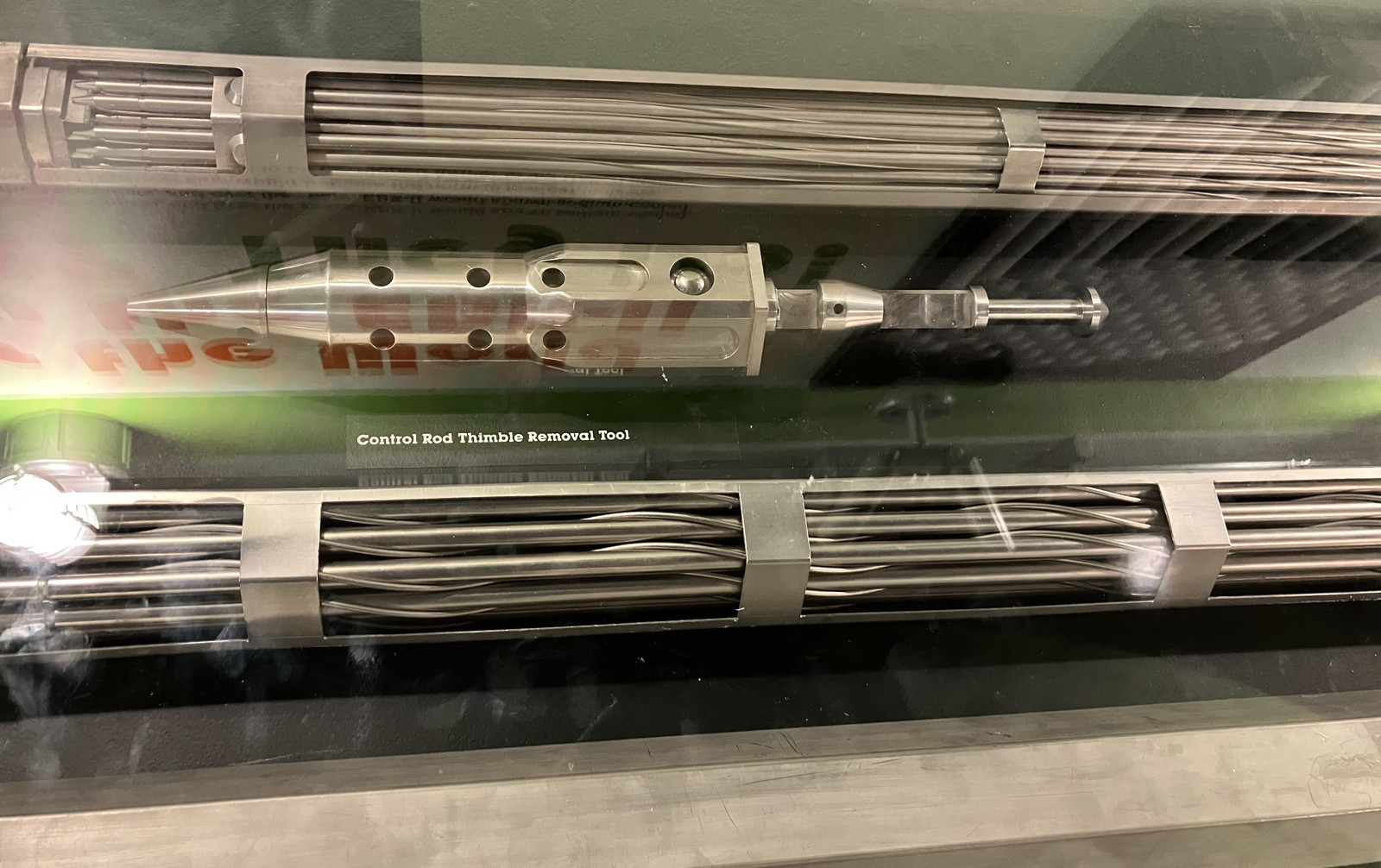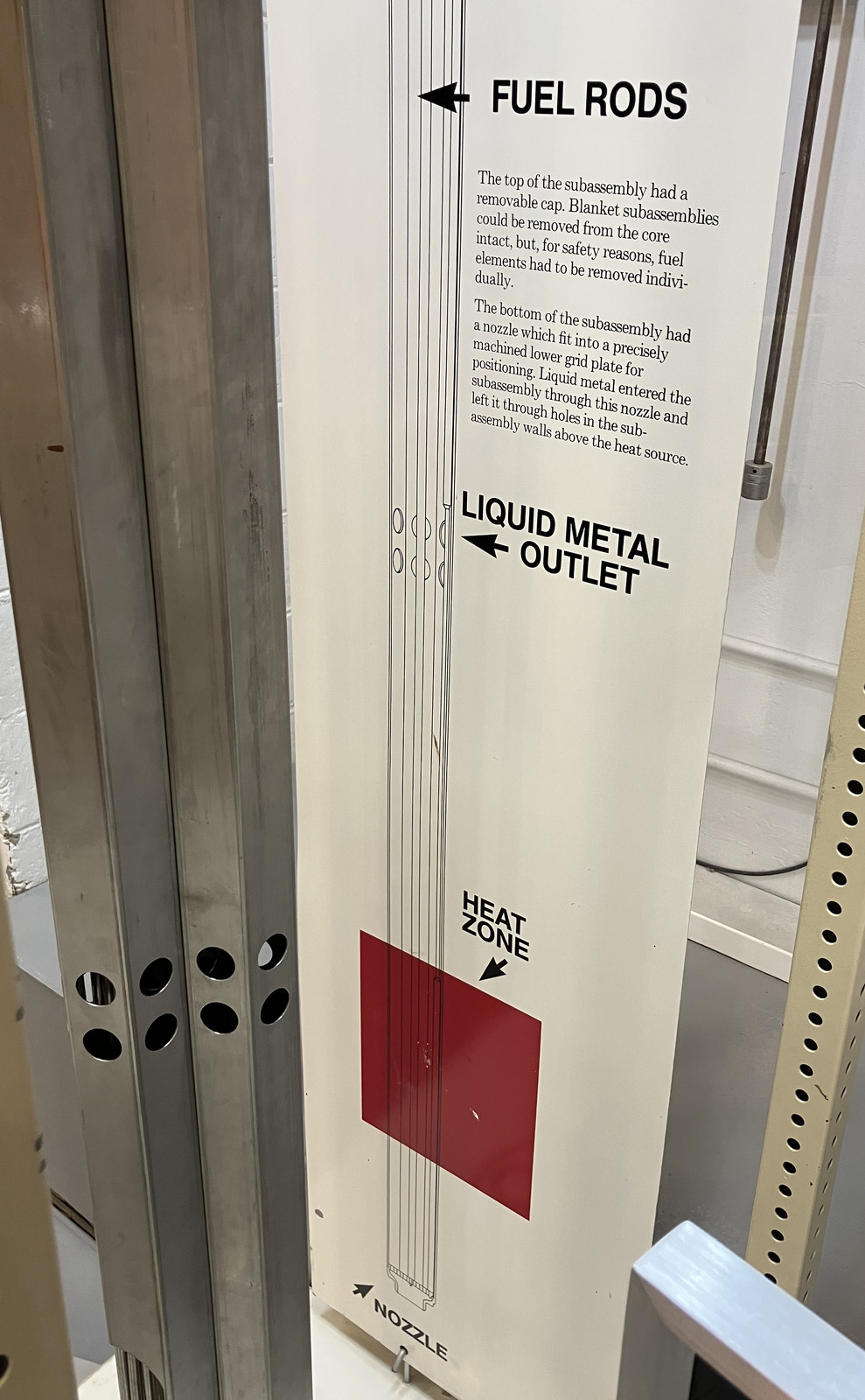Some demonstration models of the EBR-II fuel rods are on display as well. The top assembly is an EBR-II driver fuel subassembly, with the middle rod being a blanket subassembly (containing U-238 to breed). The bottom rod is a complete fuel assembly, not sectioned. I am, unfortunately, unclear on what a “Control Rod Thimble” is, and why it might need to be removed.