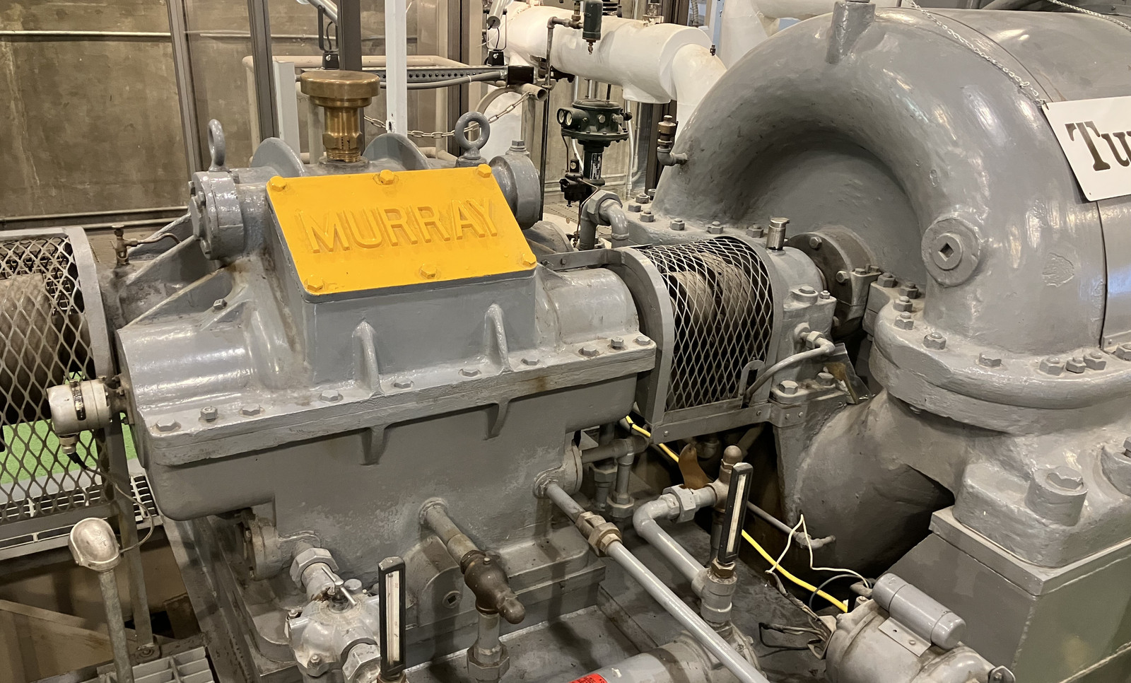 Take a look at the surface texture on the turbine’s cast end - and then go play Portal 2. Valve has done a wonderful job of capturing some of the nuances of 1950s tech in their levels, to the point that I expect some of them have toured this building. It really does feel like a Portal 2 level in some ways. The center here, between the turbine and the generator, is a large reduction gearbox. Turbines like to spin fast, generators prefer to spin rather slower, and so the problem is solved by reduction gears. It’s nice to see the couplings guarded - those are quite hazardous when spinning quickly.