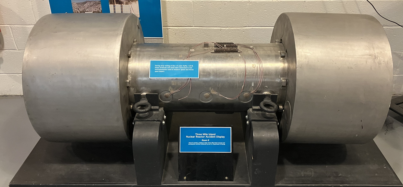 As with any good museum building, there are some other exhibits in here as well. When Three Mile Island suffered their “nuclear oopsie,” or “nuclear whoopsiedoodle,” there was a good chunk of “stuff” that had to be moved. This is a test article from the design of a transport vessel (1/4 scale) that was designed to handle “everything that could happen during transport, and more.” This one is loaded with strain gauges to monitor what’s going on.