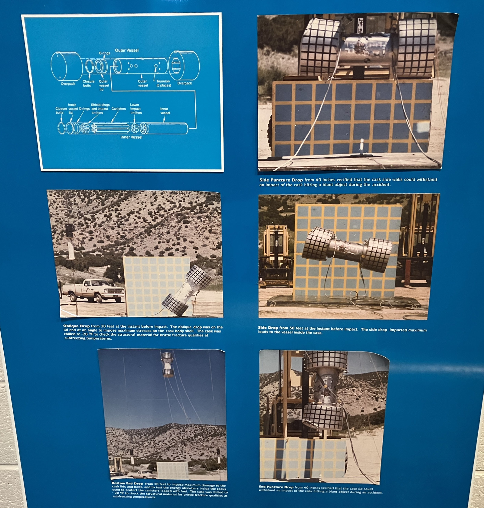 Before using these things, they subjected them to what would, now, be called the “Mythbusters Treatment.” Take a sample, and try to destroy it. It involved a lot of drops from 30’ onto hard surfaces, and if you look, you’ll notice that most of the impacts involve an already damaged test article. The goal was to ensure that no matter what happened, radioactive materials wouldn’t leak - and it seems to have been successful!