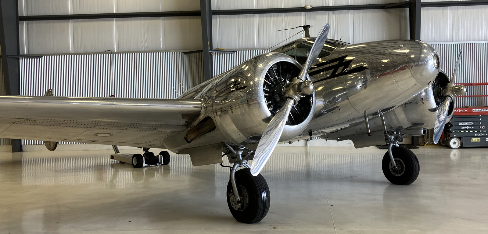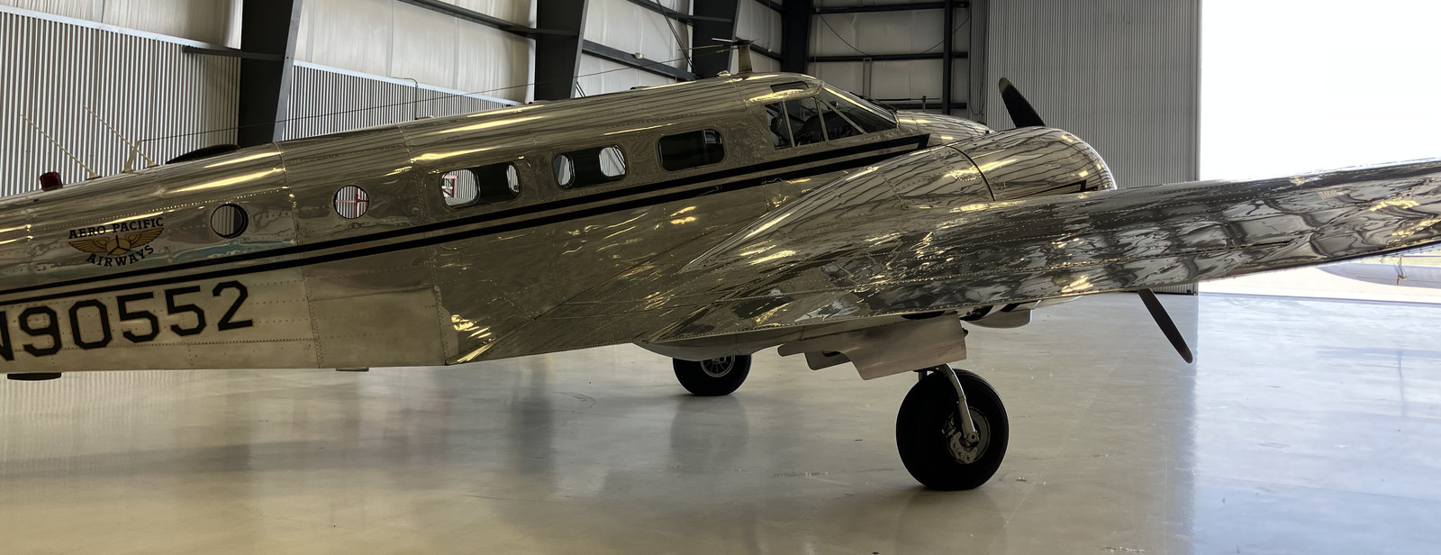 Do I want to maintain a polished aluminum airplane? Having other things in life to do beyond “polish aluminum,” I’m not sure I would want to own one. But when they’re polished up, wow do they look good! This is a Beechcraft Model 18, with a pair of 450HP R-985s.