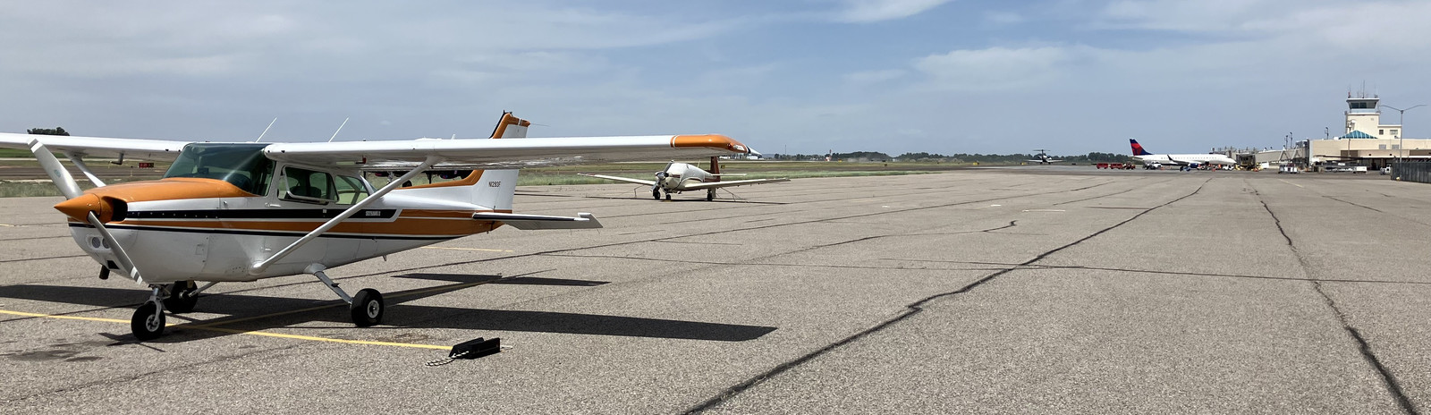 Yes, that’s a commercial jet protected from me by a few lines on the pavement back there. Aviation is really cool, in so many ways, and one of them is that if you’re a pilot, you’re basically trusted to “not screw things up.” No, I probably couldn’t walk over to the jet without someone wondering what I was doing, but as far as the rest of the ramp area goes, pilots are generally trusted to not mess with things they shouldn’t.