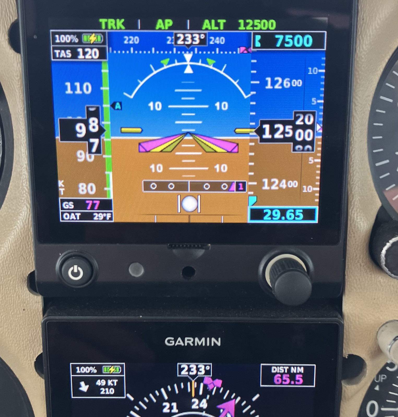 Or… not go by, mostly. I was seeing 150+kt ground speed most of the way out. I was seeing half of that going back for long periods of time. My initial plan was 10,500, but after climbing there, the turbulence remained very unpleasant, so I decided to try for 12,500. It took some time to get there, and the ride was smoother, but the winds were somewhat worse. Pick your poison. Given that the winds at 10,500 weren’t substantially less, I decided that a longer, marginally smoother ride might be nice, so I hung out up there and just… twiddled my thumbs, mostly. I had no shortage of time.